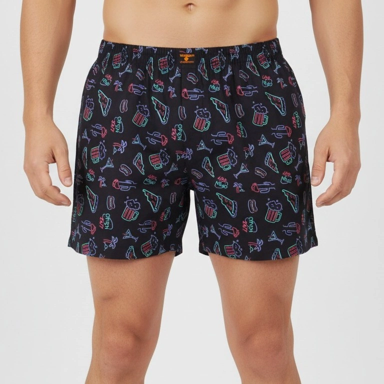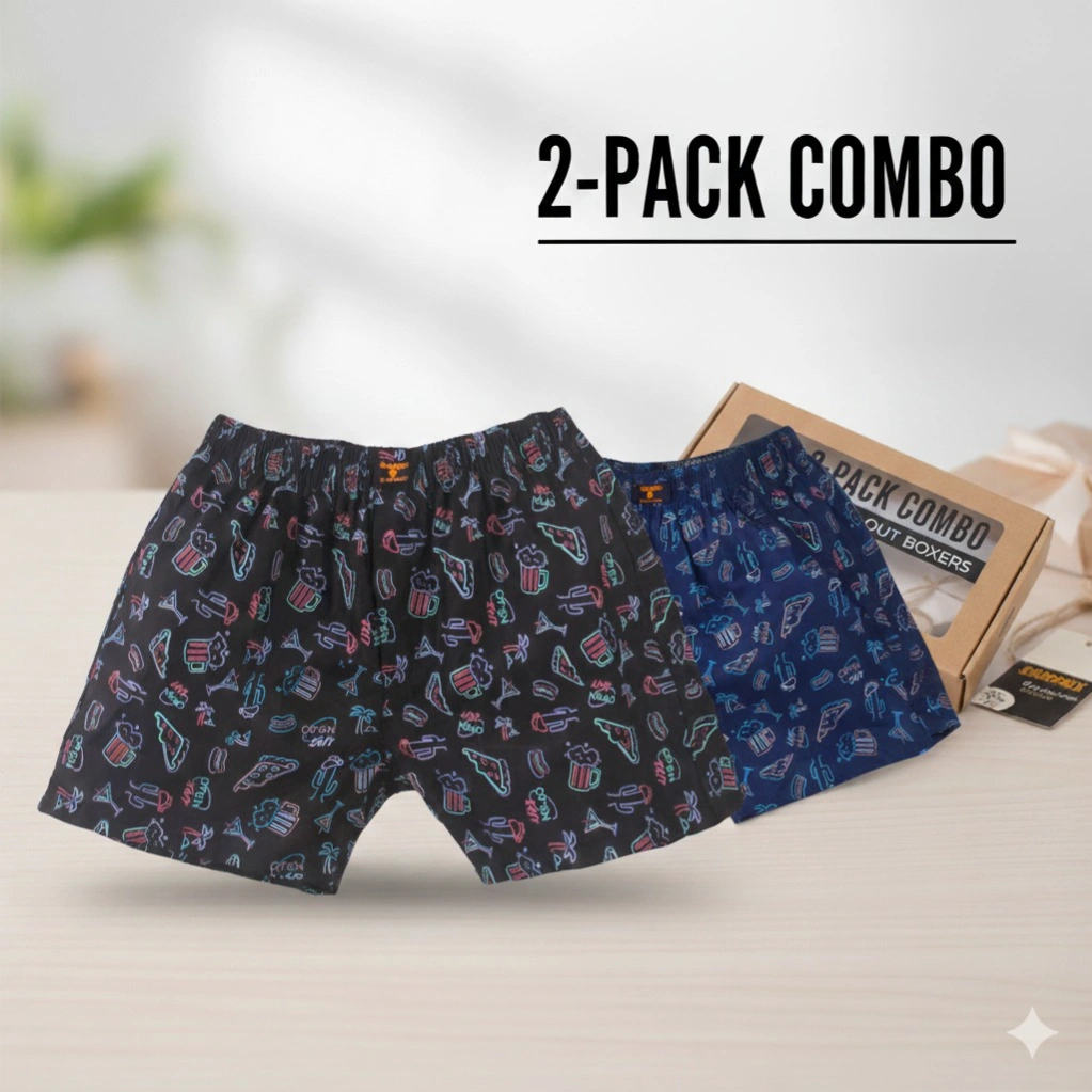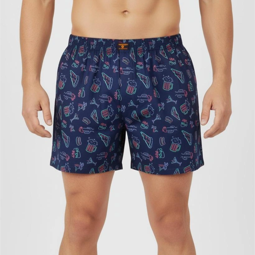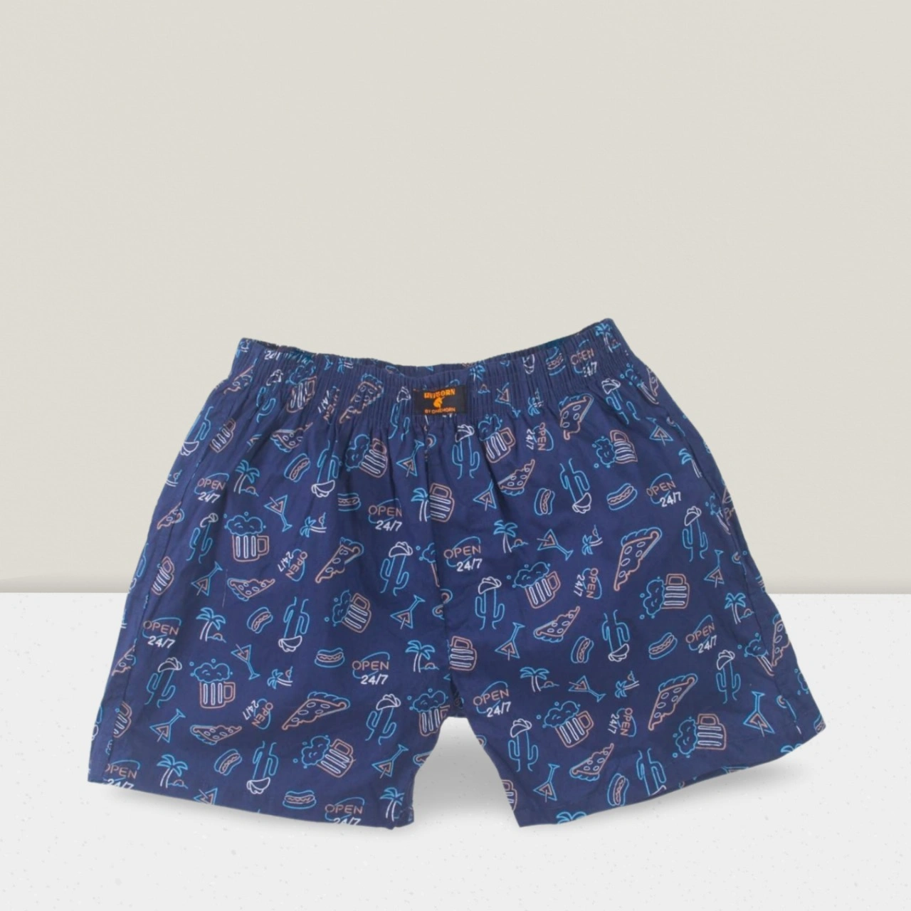 Who said cravings come only at night? Meet ONE HORN – 24/7 SNACKS COMBO, the ultimate boxer for every food lover who lives, laughs, and munches anytime, anywhere. Loaded with fun snack prints like pizza, burgers, and beer, this one’s made for those who take their comfort (and appetite) seriously.