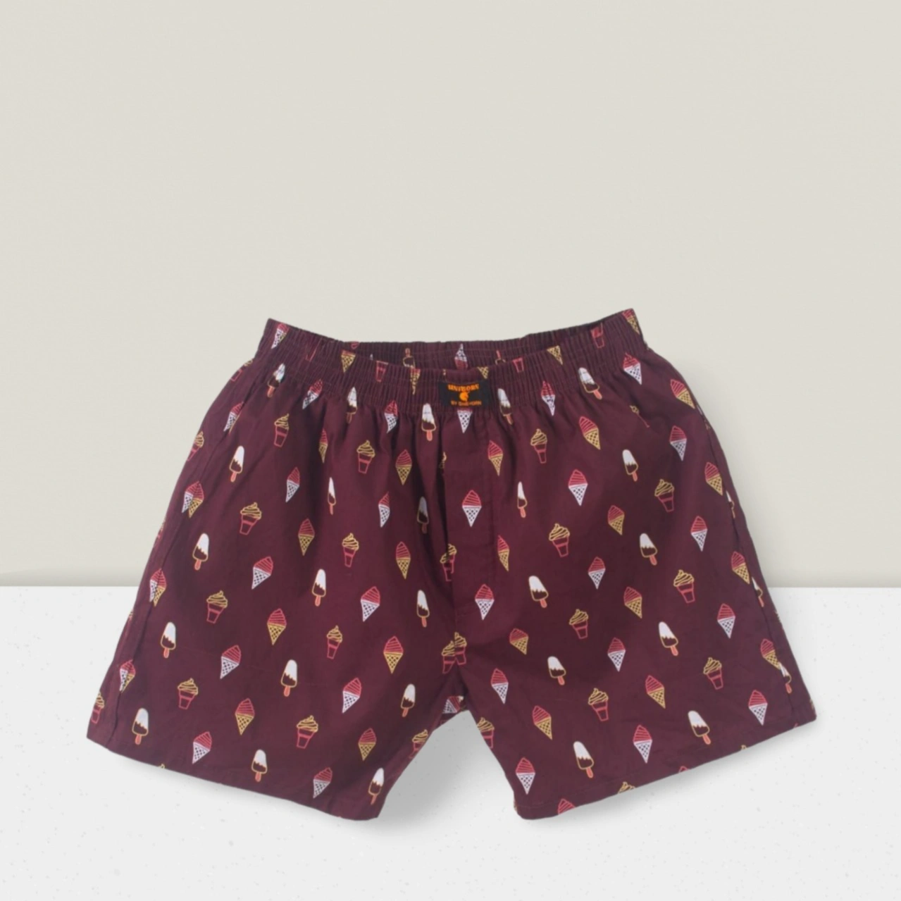 Who said cool can’t be comfy? Meet ONE HORN – ICE CREAM, a sweet blend of comfort and chill. Dipped in a rich maroon base and topped with playful ice cream prints, this boxer is your perfect scoop of style and softness — made to beat the heat or just vibe indoors.